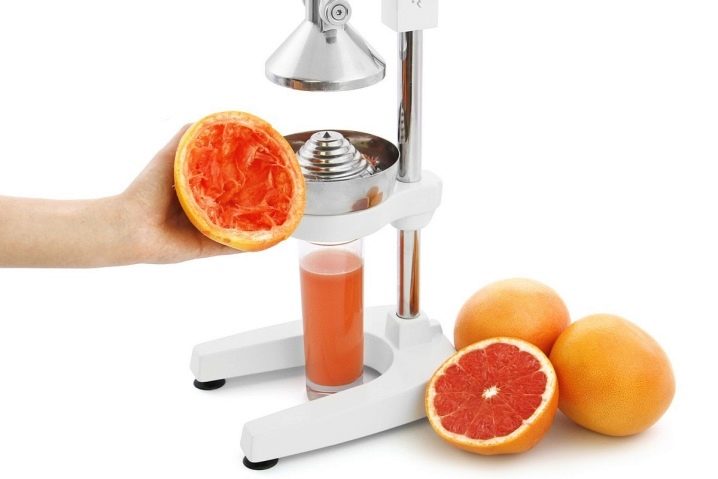 - كتيب هي أبسط الأجهزة. تتكون من وعاء يتدفق فيه العصير ومخروط مدمج ، يتم به ضغط المشروب. في بعض النماذج ، يتم فصل الوعاء والمخروط ويكون المخروط عبارة عن فوهة. اسم الجهاز يتحدث عن نفسه – تعمل يديك كضغط هنا. سعر هذه الأجهزة منخفض للغاية ، ويرجع ذلك إلى تركيزها الضيق – بمساعدة مثل هذا الجهاز ، يمكنك الحصول على عصير الحمضيات فقط. الجهاز سهل الاستخدام للغاية – ما عليك سوى قطع الفاكهة وإرفاقها بالمخروط وقلبها عدة مرات.