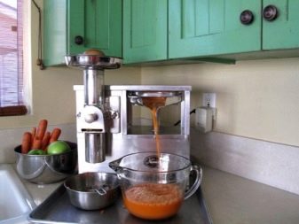 باستخدام مثل هذا الجهاز ، يمكنك الحصول على العصير عمليا بدون شوائب. بهذا المعنى ، يعتبر الأكثر فعالية من بين البقية. يمكن أن يصل إنتاج العصير مع هذا النهج إلى 85-90٪. صحيح ، للحصول على مثل هذه النتيجة ، تحتاج إلى بذل جهود كبيرة..