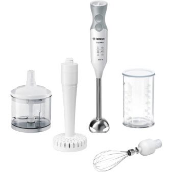 نموذج شعبي وبأسعار معقولة بوش MSM66155 مصنوع من لون فاتح. تعتبر الطاقة المنخفضة التي تبلغ 600 واط مثالية للأطفال الصغار وهريس الطعام. الوعاء مزود بغطاء مناسب لا يسمح لك فقط بالتحضير ، ولكن أيضًا لتخزين المكونات.