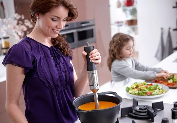الملحق مفيد أيضًا للحساء المهروس ، وهو أحد الأطباق الأكثر شيوعًا وترتيبًا في المطاعم. لسوء الحظ ، في المنزل ، ليست كل ربة منزل مستعدة لإرضاء الأسرة بشيء من هذا القبيل. ومع ذلك ، فهو عبث تمامًا ، لأنه بمساعدة فوهة أصبح القيام بذلك أسهل من أي وقت مضى. جميع مكونات الحساء مقلية أو مطهية أو مسلوقة. بعد ذلك ، يتم تبريد كل ما تحتاجه وسحقه ، وفي بعض الوصفات يتم استكماله بالكريمة. في الوقت نفسه ، بمساعدة الفوهة ، من الممكن تجنب بعض التحبب ، وهو ما تخطئه النماذج القياسية في كثير من الأحيان. يجدر البدء في الطحن بأقل إعداد للسرعة..