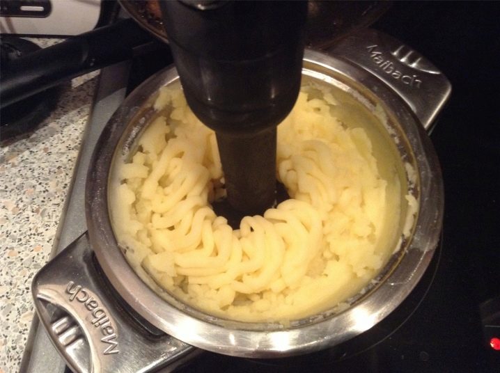 ومع ذلك ، فإن هذه الحالة لها مزايا أخرى أيضًا. على سبيل المثال ، البطاطس المهروسة ، عند استخدامها ، تتحول إلى رقيق للغاية ومتجدد الهواء. بالنسبة للعديد من الفواكه والخضروات ، هذا العامل ليس هو الأهم ، ولكن عندما يتعلق الأمر بالبطاطس المهروسة ، فهذه الوظيفة مفيدة للغاية. ربما حاول كل منا في أي وقت مضى طهي هذا الطبق الجانبي اللذيذ باستخدام أداة حديثة ذات أرجل قياسية. على الأرجح ، كانت النتيجة كتلة لزجة سرقت سحر البطاطس الطرية..