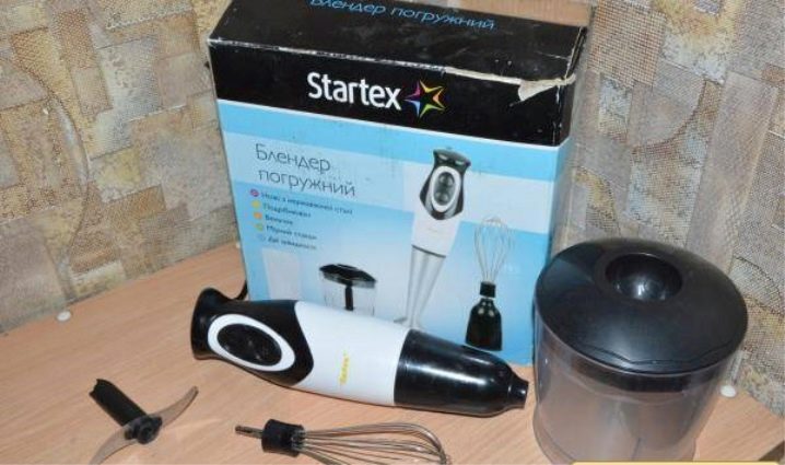 خلاط غاطس ، والذي يباع في سلسلة هايبر ماركت Lenta. بسعر مخفض ، يمكن شراؤها مقابل مبلغ صغير يبلغ حوالي 1000 روبل. يتضمن خفاقة وطحن الزجاج. قوة كافية حتى لطحن المكسرات.