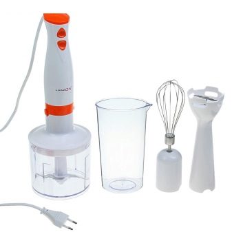 تم إنتاج نموذج الميزانية هذا في أوكرانيا. يحتوي على مجموعة المرفقات الرئيسية ، أي الخلاط نفسه ، ومضرب بيض ، وزجاج طحن. لها سرعتان. يكلف حوالي 1000 روبل.