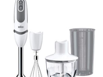 خلاط غاطس ، والذي يباع في سلسلة هايبر ماركت Lenta. بسعر مخفض ، يمكن شراؤها مقابل مبلغ صغير يبلغ حوالي 1000 روبل. يتضمن خفاقة وطحن الزجاج. قوة كافية حتى لطحن المكسرات.