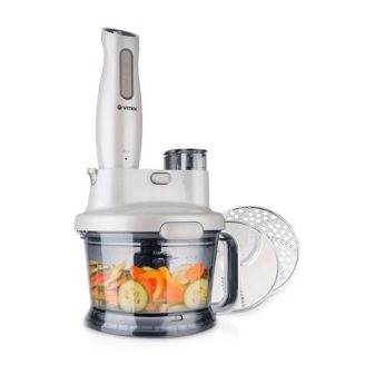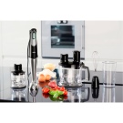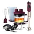 إنه أحد أفضل الأجهزة منخفضة التكلفة. تبلغ قوتها 600 واط ، وبفضل سرعتها (وضع التوربو أيضًا) ، يمكن استخدامها عالميًا تقريبًا. تشتمل المجموعة أيضًا على أدوات قطف الثلج ، ومفرمة ومضرب لعجن العجين. يعمل بشكل جيد مع اللحوم النيئة والأطعمة الصلبة.