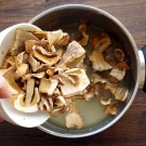 أولاً ، ضعي الفطر المجفف في المرق لمدة ساعة تقريبًا. ثم نضع البطاطس المقشرة والمقطعة فيها ونشعل النار فيها. في هذا الوقت ، يُقطّع البصل ويُقلى حتى يصبح لونه بنياً ذهبياً ، ويُضاف إلى الماء المغلي ويُطهى الحساء حتى ينضج. في النهاية نضيف الكريمة ونطحن الحساء بالخلاط حتى يصبح المزيج ناعمًا.