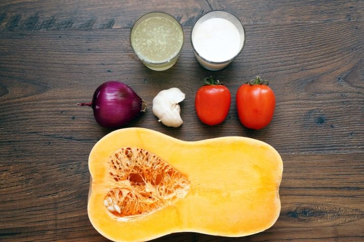 لهذا الطبق ، تحتاج إلى طهي كيلوغرام واحد من اليقطين ، 2 طماطم ، رأس ثوم واحد ولتر من المرق. تحضير 200 مل من الكريم الخالي من الدسم و 100 غرام من الزبدة وبصل أحمر.