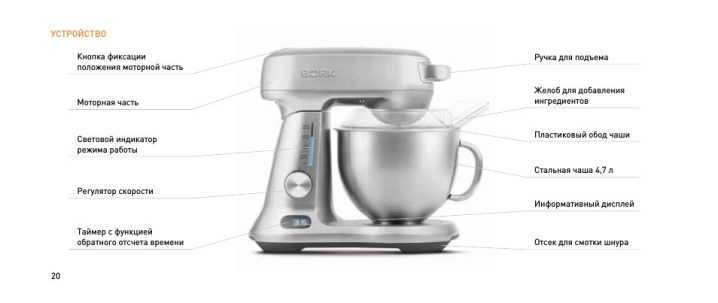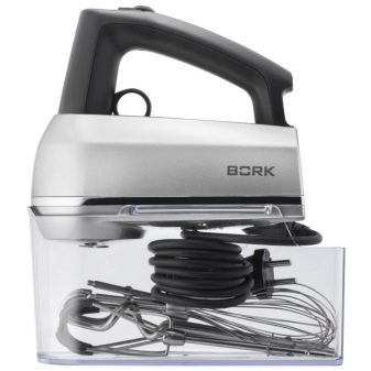 يتجلى العيب عادة في قوة منخفضة – لن يكون من الممكن عجن العجين في الخبز. إجهاد اليد من العمل المطول ، على الرغم من أن الخلاطات اليدوية BORK لها مركز ثقل متحرك ، مما يقلل من الضغط على المعصم. عند مقاطعة العمل ، عليك التفكير في مكان وضع الخلاط حتى لا تلطخ الطاولة. جهزت BORK موديلاتها بحامل في النهاية.