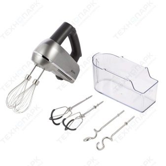 يحتوي الموديل 250 واط على 3 أنواع من الملحقات ويعمل بتسع سرعات. السمة المميزة هي وجود مؤقت يصل إلى 15 دقيقة. صحيح ، ليس من الواضح سبب احتياجك لمؤقت في الخلاط اليدوي. ربما حتى لا تبدأ المطبخ وتعرف كم من الوقت يستغرق خفق الكريمة?