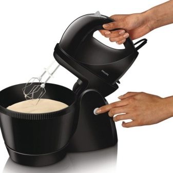 لكن هذا الخلاط له بعض العيوب. لا تصل مخافقها إلى قاع الإناء بشكل كبير ، مما يعقد عملية الخلط. الوعاء لا يدور من تلقاء نفسه. تتطلب بعض المنتجات جلدًا يدويًا إضافيًا..