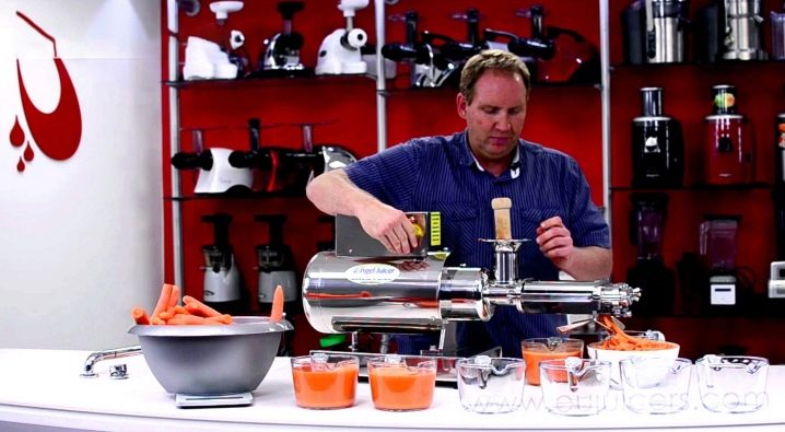 يمر العصير مبدئيًا من خلال فتحات خاصة ، وهي أصغر شبكة ، دون تمرير الجزيئات المتبقية. التعليقات حول هذا الجهاز هي الأكثر إيجابية فقط: مريحة وعملية. باستخدامه في المنزل ، يشارك الملاك انطباعاتهم ، مشيرين إلى الدوران على ثلاثة مستويات.