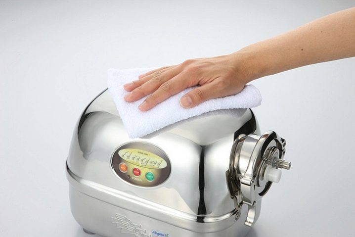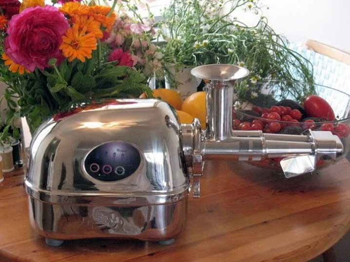 ميزة أخرى جيدة التأريض في تشغيل هذا الجهاز المنزلي المذهل هي أصغر شبكة معدنية مع حد أدنى من النطاق الترددي. يستثني دخول البذور وبقايا القشر والجزيئات الصغيرة الأخرى إلى المنتج النهائي ، والتي لا علاقة لها بالعصير على هذا النحو. في عملية المعالجة ، لا تتلامس المواد الخام عمليًا مع الهواء ، وبالتالي تمنع تنشيط عملية الأكسدة.