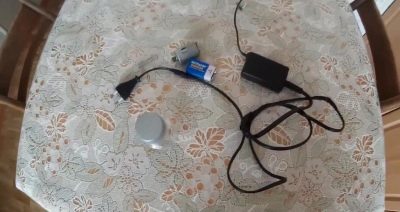- الآن نأخذ كتلة طاقة بسلكين ، أحدهما نربطه بمكواة لحام بالكتلة ، والثاني مباشرة إلى المحول.