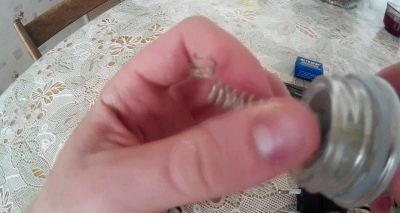 - في الختام ، على هذا الدبوس البارز من الجسم ، نضع فوهة سيليكون ببراغي وهذا كل شيء ، الخلاط الصغير جاهز.