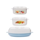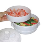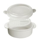 جهاز بخار الميكروويف المدمج عبارة عن وعاء بلاستيكي ، من طبقة واحدة ، من طبقتين أو مكونين (يتكون من عنصرين رئيسيين – وعاء طبخ ومنخل) ، ويحتوي على حقيبة تخزين. يتكون النموذج الأساسي الذي تقدمه الشركة المصنعة المحلية Polymerbyt من ثلاثة أجزاء: منصة نقالة وشبكة وغطاء. تتوفر البواخر بأشكال دائرية ومربعة ومستطيلة بألوان مختلفة. من الأفضل العمل بأداة دائرية – فهي مناسبة لأي فرن ميكروويف ، ولكن إذا كنت ترغب في شراء شكل مختلف ، يمكنك اختياره ، هذه اللحظة لا تحدث فرقًا في النتيجة النهائية. سيكون فرن الميكروويف المزود بوظيفة البخار هو أفضل عملية شراء ، وسيفهم أصحابه ذلك بعد استخدامات قليلة..