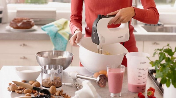 تتمتع هذه الأجهزة المنزلية بوضع “صغير” ، لكن فوائدها هائلة. إنها الآلة المثالية للاهتزاز والجلد والخلط والعديد من العمليات اليومية الأخرى على سطح الطاولة. يحتاج خلاط Philips بضع دقائق فقط لتحويل بياض البيض إلى رغوة قوية ، وخلط البيض والحليب لعجة جيدة التهوية ، وصنع فطيرة الكريمة ، وكوكتيل للضيوف. ولكن في أغلب الأحيان يتم استخدامه لإعداد مجموعة متنوعة من المعجنات. في هذه الحالات ، هو حقًا مساعد لا غنى عنه..