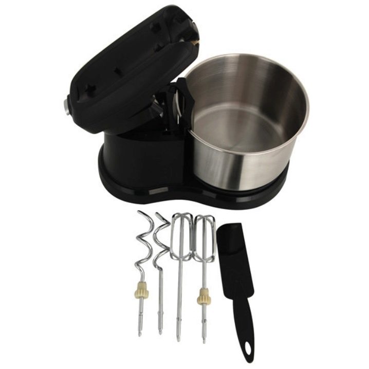 تحتوي المجموعة أيضًا على العديد من المرفقات. بالإضافة إلى الخفاقة القياسية ، يتم أيضًا تضمين خطافين مختلفين للعجن. يتحرك الوعاء أيضًا أفقيًا لتسريع المهمة. على عكس الطرز باهظة الثمن ، لا توجد إمكانية لتعيين مؤقت أو تنظيم وقت التشغيل ، لذلك عليك تتبع ذلك..