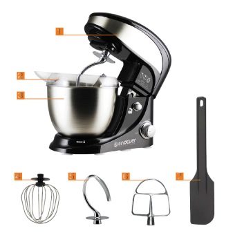 النموذج مجهز بوعاء 4.5 لتر ، بالإضافة إلى العديد من الملحقات للعجن والخلط بالإضافة إلى خطاف لتحضير العجين. جميع المكونات مصنوعة من الفولاذ المقاوم للصدأ عالي الجودة. إذا قررت شراء مثل هذا الخلاط الاحترافي ، فيمكنك التأكد من أنه سيخدمك لسنوات عديدة دون أي مشاكل..