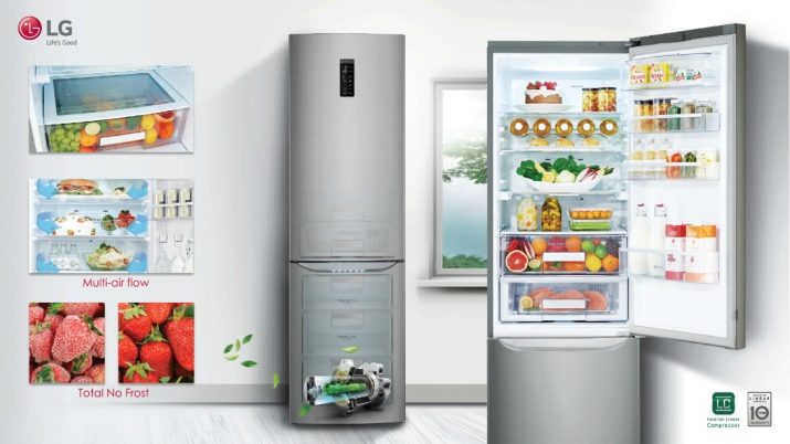 تتوفر ثلاجات LG المزودة بتقنية Total No Frost في عدة طرز. كلهم من غرفتين ، مع فريزر سفلي. لديهم نظام توفير الطاقة A + ، والذي يسمح بتقليل استهلاك الكهرباء إلى 376 كيلو واط في الساعة سنويًا.
