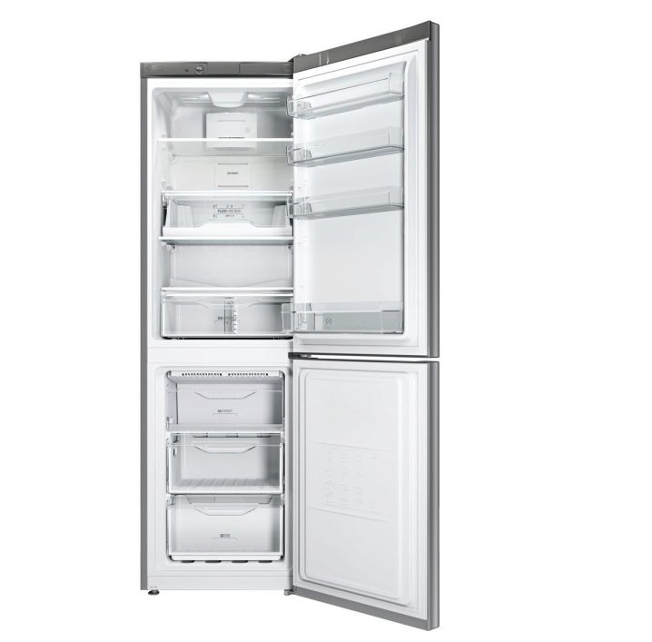 يمثل الطراز Indesit LI8 FF2 SH فئة أعلى. إنها وحدة فسيحة ومريحة للغاية من اللون الفضي بارتفاع 189 سم ، التصميم صارم وأضيق الحدود ، أبواب الغرفتين مجهزة بمقابض أنيقة. تبلغ أحجام غرف التبريد والتجميد 90 و 215 لترًا على التوالي. هناك إمكانية لتعليق الأبواب.