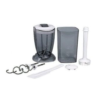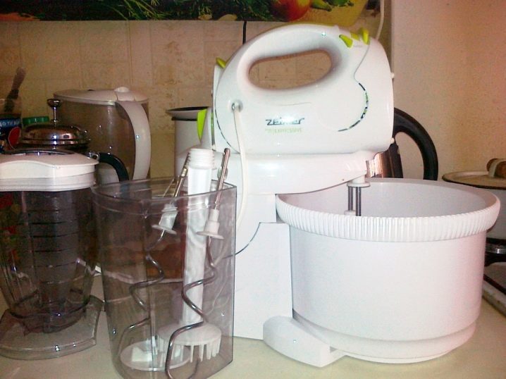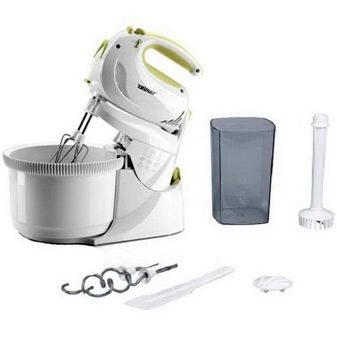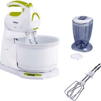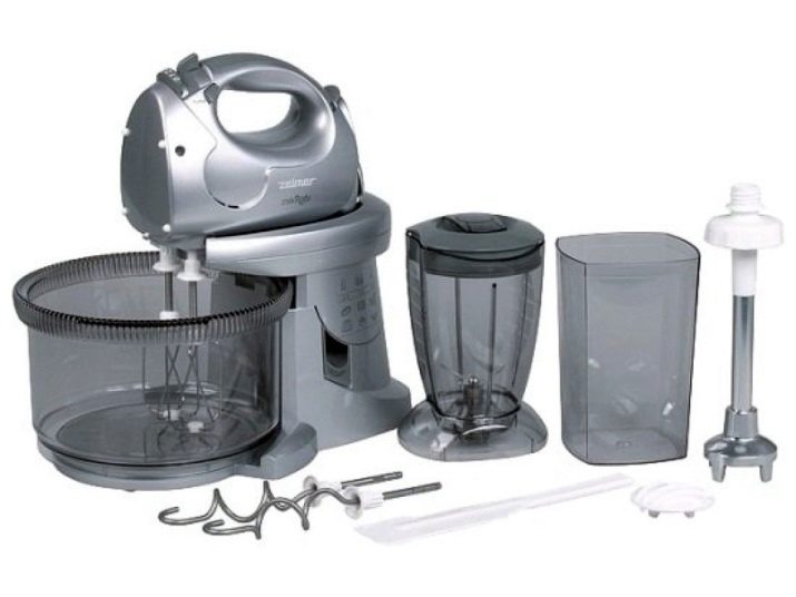 بالإضافة إلى الخفاقات التقليدية وخطافات العجن ، فإن الجهاز مزود بساق خلاط مصمم لخلط المكونات السائلة وطحن المنتجات المطبوخة والخام وإعداد المايونيز وأطباق الفطائر الأخرى. ملحق الخلاط هو ملحق لا غنى عنه لتحضير طعام الأطفال.
