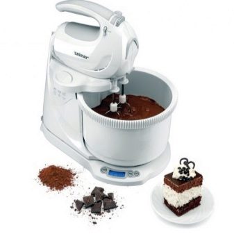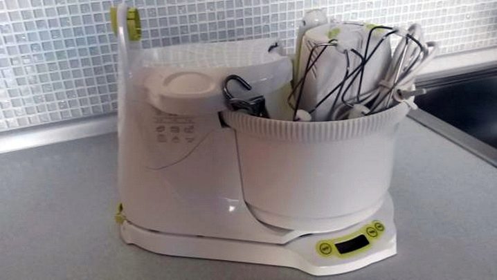 يمكن تجهيز الموديلات الأكثر تكلفة ، بالإضافة إلى مجموعة من الملحقات القياسية ، بموازين وملحقات الخلاط. ستكون الميزة هي أن الهيكل بأكمله مثبت بثقة على الطاولة ، ولا تحتاج إلى حمل أي شيء بين يديك. أثناء تدوير الوعاء مع فوهات ، تظل الأيدي حرة ويمكنك القيام بأعمال أخرى.