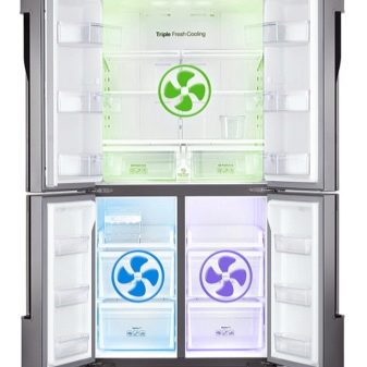- يوفر نظام التبريد متعدد التدفق الهواء البارد لكل رف ، مما يساعد على توزيع درجة الحرارة بالتساوي في خزانة الطهي. هذا مهم للغاية عندما تكون الأبواب مفتوحة. يتم تبريد جميع حجرات الثلاجة بالتساوي ، مما يحافظ على الطعام طازجًا لفترة طويلة جدًا..