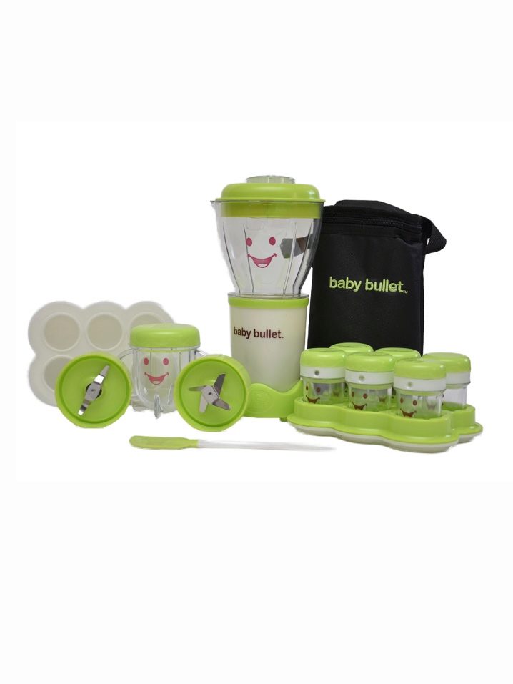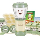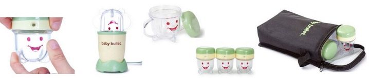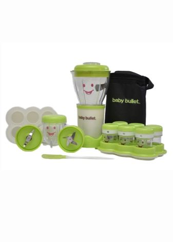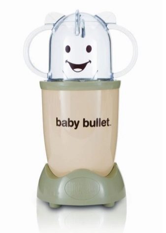 رصاصة طفل. إنه خلاط خاص جدًا مصمم خصيصًا لإعداد الطعام لطفلك. يمكنك طهي ما يصل إلى سبعة أطباق مختلفة معها. بالإضافة إلى ذلك ، يتم تضمين كتاب وصفات ودليل غذائي ووعاء بغطاء لست حصص..