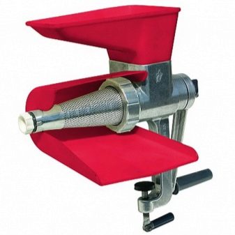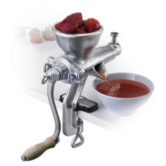 أحد أحدث الموديلات التي تم طرحها للبيع مؤخرًا. يتم ضمان الجودة نظرًا لوجود شبكة في الجهاز ، بفضلها يتخلص السائل تمامًا من بقايا البذور الصغيرة. الجهاز صغير الحجم. مصنوعة من مواد صديقة للبيئة ، مما يتيح لك الحصول على منتج آمن تمامًا لصحة الإنسان.