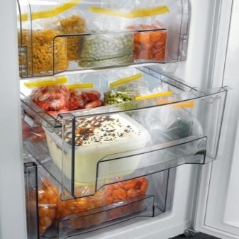 يشتكي العديد من المستهلكين من أن الطعام الموجود في هذه الثلاجات قد تعرض للعوامل الجوية. توجد هذه المشكلة بسبب حقيقة أن الهواء داخل الثلاجة يتجدد باستمرار. للحفاظ على الطعام في شكل أكثر أناقة ، يكفي شراء حاويات خاصة وأغشية تغليف. من خلال وضع الطعام في مثل هذه الحاويات أو لفه في فيلم ، لن تنشأ المزيد من المشاكل مع التجوية..