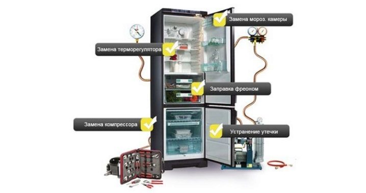 أثناء التشغيل ، من الممكن حدوث أعطال ، وقد تكون هناك حاجة إلى المكونات التالية للتخلص منها: المصابيح الكهربائية ، والأربطة المطاطية ، والثرموستات ، والمقبض ، والمكثفات ، ووحدة التحكم والعرض ، والضواغط وأجزائها ، ومرحلات بدء التشغيل وغيرها.
