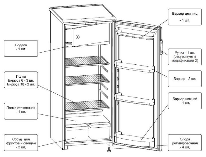 تحتوي حجرة الثلاجة على أرفف مختلفة في الحجم والكمية حسب الطراز. يمكن أن يكون الرف عبارة عن شبكة معدنية أو سطح زجاجي صلب. توجد أيضًا أرفف للأبواب تتيح لك استخدام المساحة الخالية بشكل ملائم وفعال. بشكل منفصل ، عند الضرورة ، يمكنك تثبيت ملحق خاص لوضع البيض. عادة ، يوجد وعاءان في الجزء السفلي من حجرة الثلاجة لتخزين الخضار والفواكه..