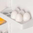 تحتوي حجرة الثلاجة على أرفف مختلفة في الحجم والكمية حسب الطراز. يمكن أن يكون الرف عبارة عن شبكة معدنية أو سطح زجاجي صلب. توجد أيضًا أرفف للأبواب تتيح لك استخدام المساحة الخالية بشكل ملائم وفعال. بشكل منفصل ، عند الضرورة ، يمكنك تثبيت ملحق خاص لوضع البيض. عادة ، يوجد وعاءان في الجزء السفلي من حجرة الثلاجة لتخزين الخضار والفواكه..