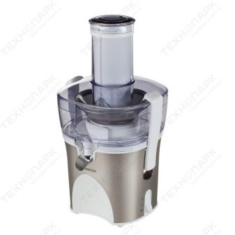 يفترض جهاز مثل هذا الجهاز وجود لولب دوار – مثقاب يسحق فاكهة أو خضروات يتم إنزالها في مجرى التحميل. ثم تنتقل الفاكهة إلى الحجرة ، حيث يتم فصل العصير عن اللب باستخدام شبكة رفيعة وقوة ضغط. المنتج النهائي على شكل عصير أو هريس يدخل كأس خاص ، وتخرج الكعكة المتبقية من خلال أنبوب منفصل.