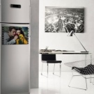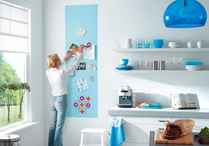إذا كان من الصعب رفض وضع المغناطيس على الثلاجة (بعد كل شيء ، فهي بالفعل تزين المساحة وتجعلها أكثر إشراقًا وأكثر تشبعًا) ، ولا تريد إفساد مظهر الجهاز ، فمن الأفضل شراء لوح معدني وتثبيته على أحد الجدران. اليوم ، يمكن شراء هذه الألواح من متجر دون أي مشاكل ، مع اختيار اللون والحجم الأمثل. وبالتالي ، سيتم تزويد المنزل بمكان لوضع المغناطيس ، والذي سوف يذكرك بأكثر اللحظات متعة في الحياة ، وفي نفس الوقت سيبقى سطح الثلاجة سليماً.