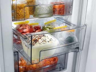 يمكن أن يحتوي الفريزر ، وفقًا للطراز ، على رف ورف واحد قابل للإزالة وعدة أدراج أو درجين يسحبان للخارج. بالإضافة إلى ذلك ، هناك وعاء لتجميد الجليد.