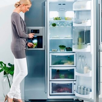 لمزايا مثل هذا النموذج ، يمكنك إضافة اتساعها ووجود إزالة الجليد تلقائيًا وصندوق للخضروات والفواكه. ومع ذلك ، ينزعج العديد من المشترين من مستوى الضوضاء التي تصدرها الثلاجة أثناء التشغيل..