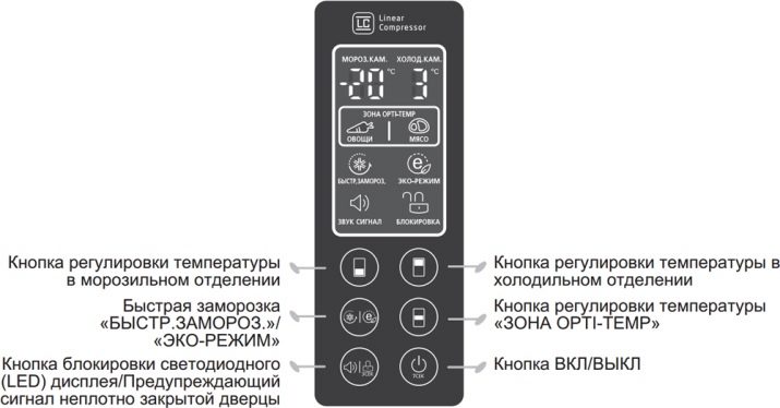 - أ – دليل الزر الإلكتروني مع شاشة LCD ، بما في ذلك خيارات اختيار درجات الحرارة ؛
