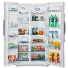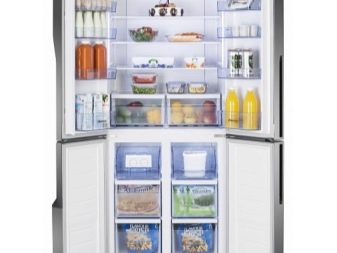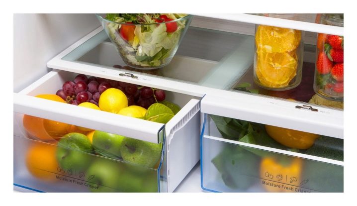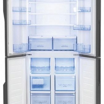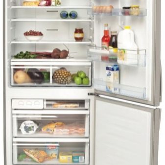 إذا قمت بإطفاء الضوء ، فلا داعي للقلق بشأن سلامة الطعام ، لأن الجهاز قادر على الحفاظ على البرودة والطعام لمدة 10 ساعات. هذا النموذج له بابان. وأبعادها مرتبة: العرض – 68 سم ، الارتفاع – 175.6 سم ، العمق – 73.5 سم ، تم صنع الثلاجة من البلاستيك والمعدن.
