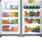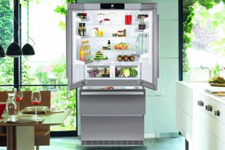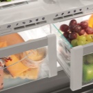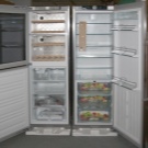 ثلاجة “جنبًا إلى جنب” (باب مزدوج) – للأشخاص الأكثر فطنة. ضخمة ، مناسبة للمنازل الريفية حيث تجتمع الشركات الكبيرة ، أو لعائلة كبيرة ذات دخل جيد. يحتوي على خزانة نبيذ مدمجة ومنطقة BioFresh كبيرة – لا يشكو العملاء من عملها. له طلاء خاص لا توجد عليه بصمات أصابع.