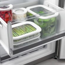 الثلاجة غالية الثمن. غرفتين ، يعمل بهدوء شديد. يوجد بالداخل منطقة Bio Fresh وفقًا لجميع القواعد (معزولة حرارياً ، مقسمة إلى غرفتين – جافة ورطبة). يدعي المشترون أنه يعمل بشكل رائع. يتم توفير إمكانية إعادة الترتيب الداخلي للأرفف. يمكنك وضعها تمامًا كما تريد عن طريق ضبط ارتفاع الأواني أو البرطمانات..