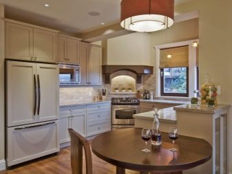 في سوق اليوم ، يمكنك العثور على الكثير من الأجهزة المنزلية المصنوعة من الألوان الفاتحة ، بما في ذلك الثلاجات. الخيار الأفضل هو وحدة خفيفة من النوع الأوروبي مع غرفتين لتخزين الطعام ، وهي رحبة جدًا ، ولكنها لا تشغل مساحة كبيرة. سيكون هذا حلاً مناسبًا للمطابخ الصغيرة ، والتي ، بسبب الظل ، تميل إلى توسيع المساحة..