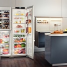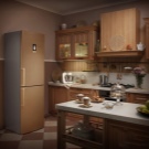 عند اختيار ثلاجة قائمة بذاتها ، يجب على العملاء أن يتذكروا أنها يجب أن “تتناغم” مع الأجهزة المنزلية الأخرى (على سبيل المثال ، فرن الميكروويف أو الموقد) ، وإلا فإنها سوف “تسقط” من الصورة الأسلوبية العامة. ستلعب الأجهزة الخفيفة الدقيقة في مطبخ الشوكولاتة المزودة بتقنية الإضاءة دور اللهجة ، والتي سيتم استكمالها ، على سبيل المثال ، بمقاعد بيج أو حتى تفاصيل داخلية مثل مزهرية أو ساعة..