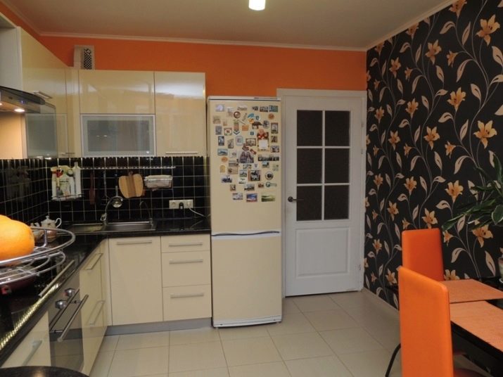 يبدو مثيرًا للاهتمام بشكل خاص إذا كانت الثلاجة تخلق تباينًا معينًا مع أثاث المطبخ. هذا هو أحد حلول التصميم الأكثر شيوعًا التي ستبدو أكثر فاعلية مع لوحة داكنة وثلاجة كريمية..