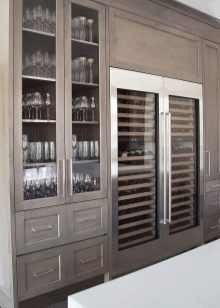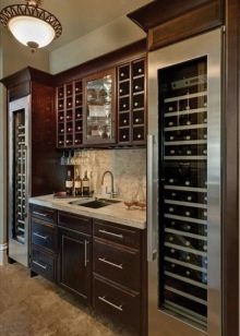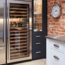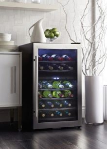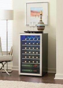 هناك مجموعة كبيرة من خزانات النبيذ في السوق المحلية ، وهي مصممة للاستخدام المنزلي. يمكنك شراء وحدة مدمجة يمكن وضعها تحت سطح الطاولة أو تزيين الثلاجة الضيقة الطويلة "تحت الشجرة".