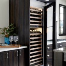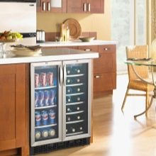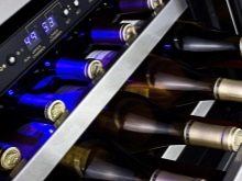 خزانة النبيذ المدمجة ليبهير "WKEes 553-20" عبارة عن وحدة من الفولاذ المقاوم للصدأ مقاس 45.5 سم / 59.1 سم / 52.2 سم بباب شفاف. الشاشة الإلكترونية مضاءة من الخلف ، ولن يسمح لك نظام العرض بترك الثلاجة مفتوحة عن طريق الخطأ. أيضا ، خزانة النبيذ هذه مجهزة بنظام تهوية وفلترة الهواء. يمكن تخزين 18 زجاجة بداخلها في نفس الوقت ، وتقع على مشابك تلسكوبية متداخلة مصنوعة من المعدن ولها جوانب خشبية. تكلفة هذا الجهاز 66990 روبل..