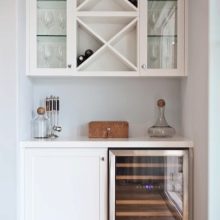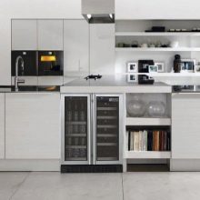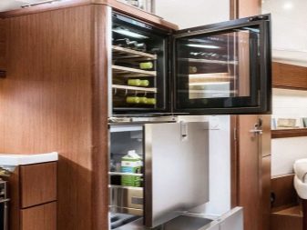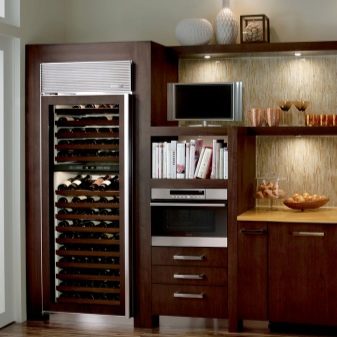 تنتمي خزانة النبيذ أيضًا إلى فئة أدوات المطبخ المدمجة. ليبهير "UWTes 1672-20", مصممة لتخزين 34 زجاجة من النبيذ كحد أقصى. النموذج مجهز أيضًا بضاغط وفلتر وشاشة إلكترونية. هناك مشابك تلسكوبية قابلة للسحب وأرفف خشبية. حجم هذا النموذج هو 81.8 سم / 97 سم / 57.0 سم ، السعر – 109،990 ص.