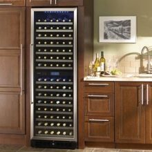 مبرد نبيذ كاسو "واين سيف 12 كلاسيك", وهو صغير الحجم (50.5 سم / 50.5 سم / 40 سم) ويحتوي أيضا على ضاغط واحد. هذا الموديل مصنوع من الستانلس ستيل ، الباب مزين بزجاج مقسّى. الأرفف التي تكدس عليها الزجاجات مصنوعة من الخشب. يتم التحكم بالثلاجة إلكترونيًا وتحتوي على شاشة بإضاءة خلفية. الحجم المفيد 87 لترًا. يمكنك شراء مثل هذه الثلاجة مقابل 35000 ص..