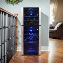 مبردات النبيذ ذات المنطقة المزدوجة تحتوي على أقسام ، يمكنك في كل منها ضبط مؤشرات درجة حرارة مختلفة. عادةً ما تكون درجة الحرارة في الجزء السفلي من الثلاجة من 6 إلى 10 درجات مئوية ، وهي مثالية لتخزين النبيذ الأبيض وتبريد النبيذ الفوار قبل التقديم. يمكن أن يتحمل الجزء العلوي درجات حرارة تتراوح من 10 درجة مئوية إلى 14 درجة مئوية ، مما يخلق بيئة مريحة لتخزين النبيذ الأحمر.