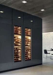 لا توجد تفاهات وتفاصيل خاطئة في تصميم ثلاجة النبيذ. يلزم وجود نظام مضاد للاهتزاز لمنع اهتزاز الزجاجة. أيضًا ، كما تعلم ، للتخزين طويل الأجل ، يجب تكديس الزجاجات على أرفف مصنوعة من الخشب الصلب. هذا يرجع إلى حقيقة أنه بعد انقضاء الوقت سوف يتجمع التكثيف على الرف المعدني أسفل الزجاجة ، مما يؤدي إلى إتلاف الملصق, بالإضافة إلى ذلك ، فإن ملامسة الزجاجة بالمعدن أمر غير مرغوب فيه أيضًا ، مما يؤدي إلى برودة النبيذ إلى إلحاق ضرر كبير بالنبيذ.